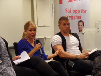 Linn Herning fra For Velferdsstaten og Kenneth Arctander Johansen fra Rusmisbrukernes Interesseorganisasjon (RiO) var inneldere på FO-frokosten i Arendal. (Foto: Margrethe Lied, FO).